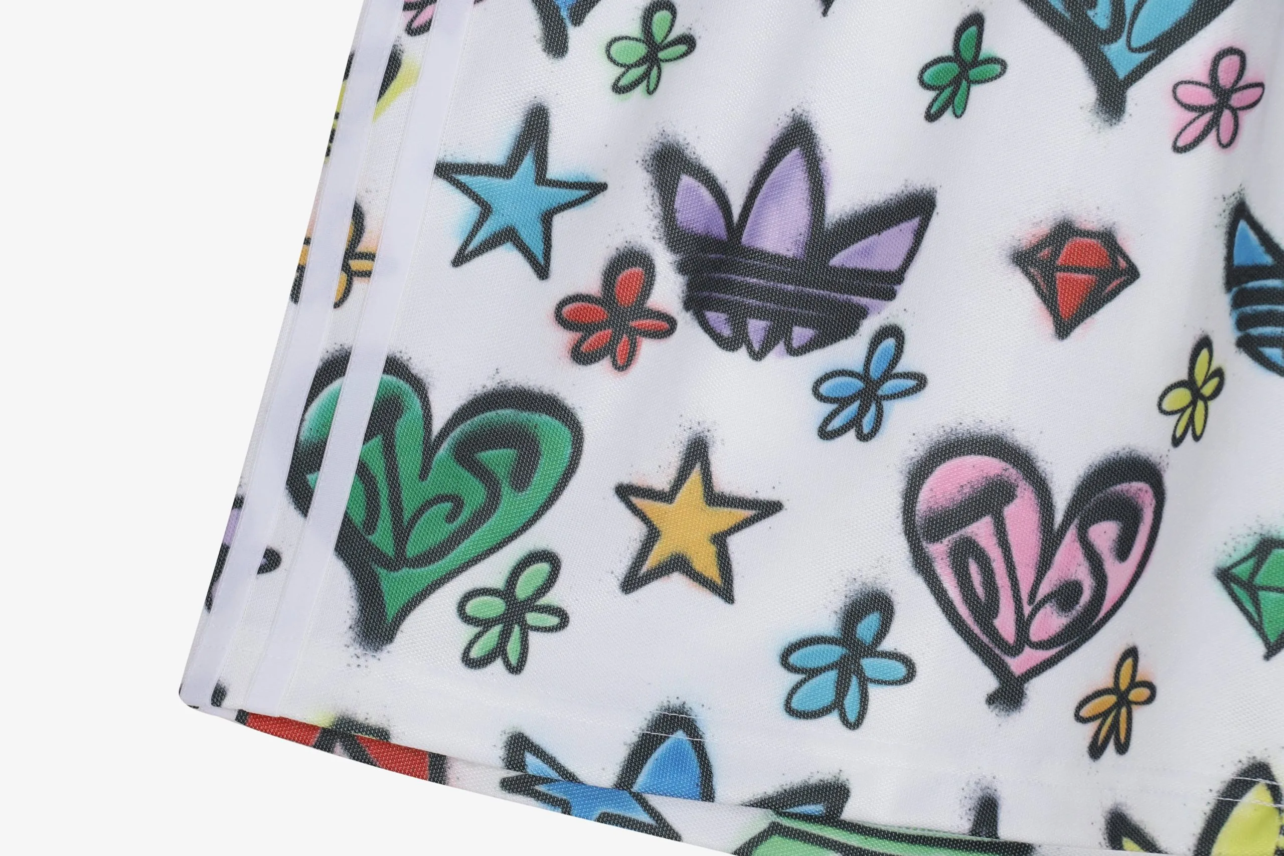 Jeremy Scott and adidas go way back. All the way back to 2003, to be exact. That’s 19 years of history, and with this latest collection, adidas Originals x Jeremy Scott fully celebrate that legacy. These shorts burst with creativity, joy and colour — all expressed through the playful graphic print. The classic, smooth Beckenbauer material gives them that special adidas touch. The shorts were made using UNITEFIT — an all-gender fit system that was created with a spectrum of sizes, genders and forms in mind.