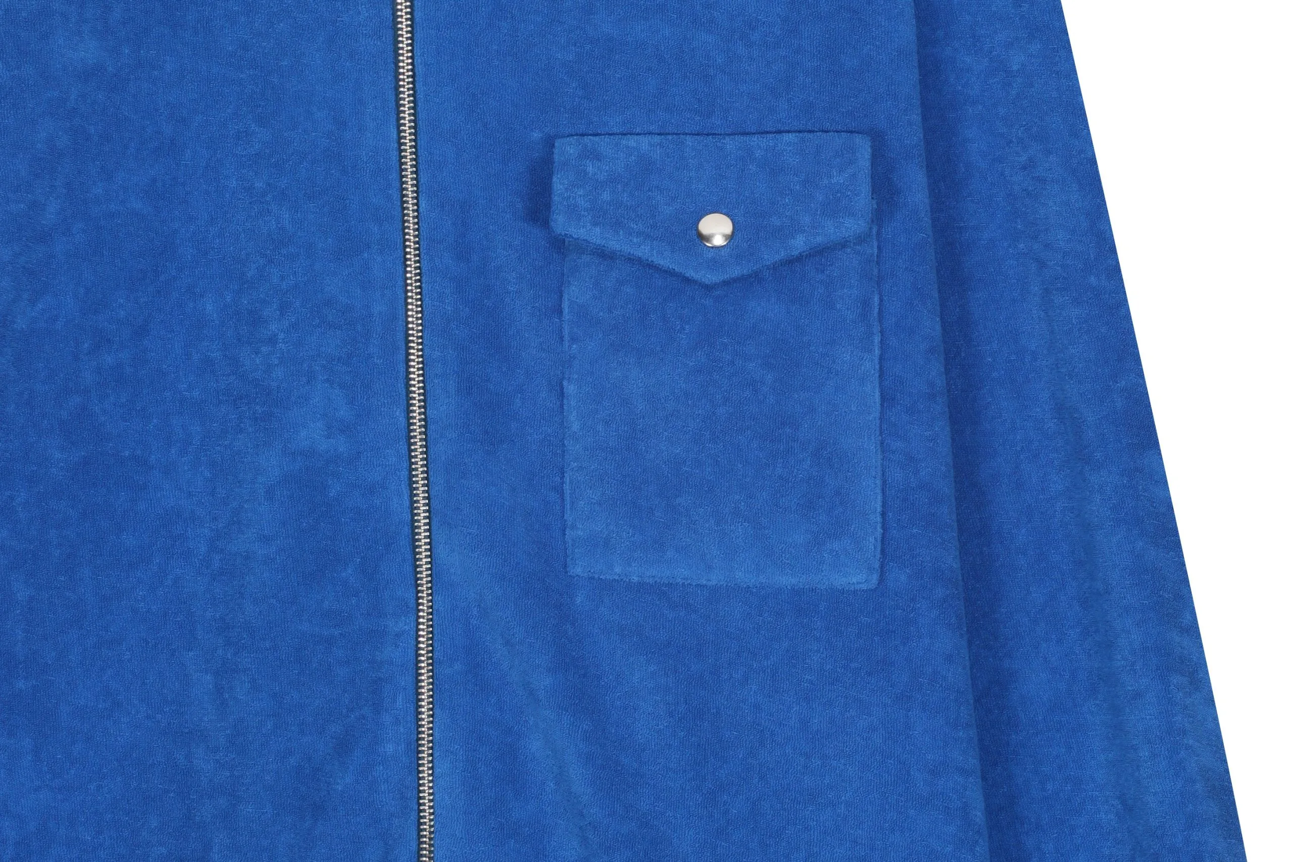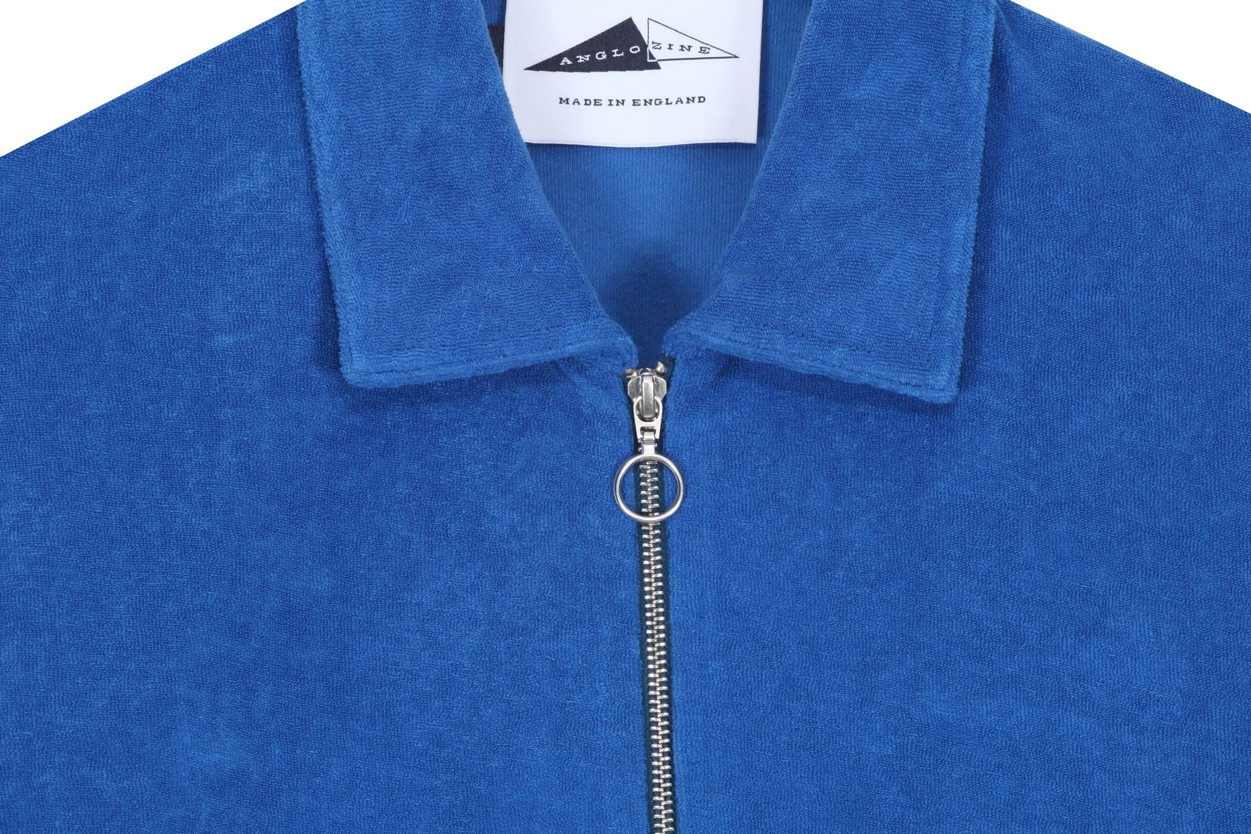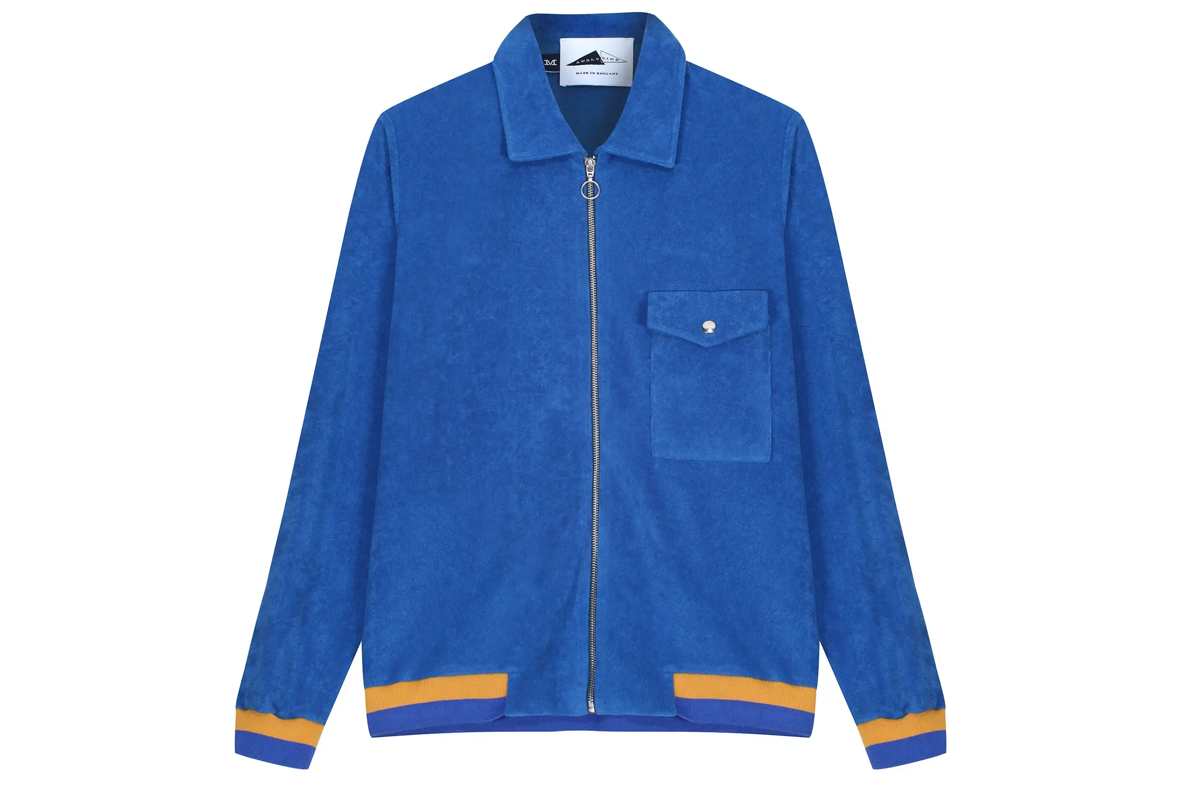 Anglozine’s neighbourhood Bethnal Green was deserted when they started to put season 6 together back in March 2020. Marooned in a locked-down area daydreams about J.G.Ballards imagined tropical London desert served as a centrepiece to this seasons collection. Here we a new style for SS21 in the shape of the Cody Towelling track jacket, constructed from soft Terry cloth with a contrasting golden yellow cuff & hem.