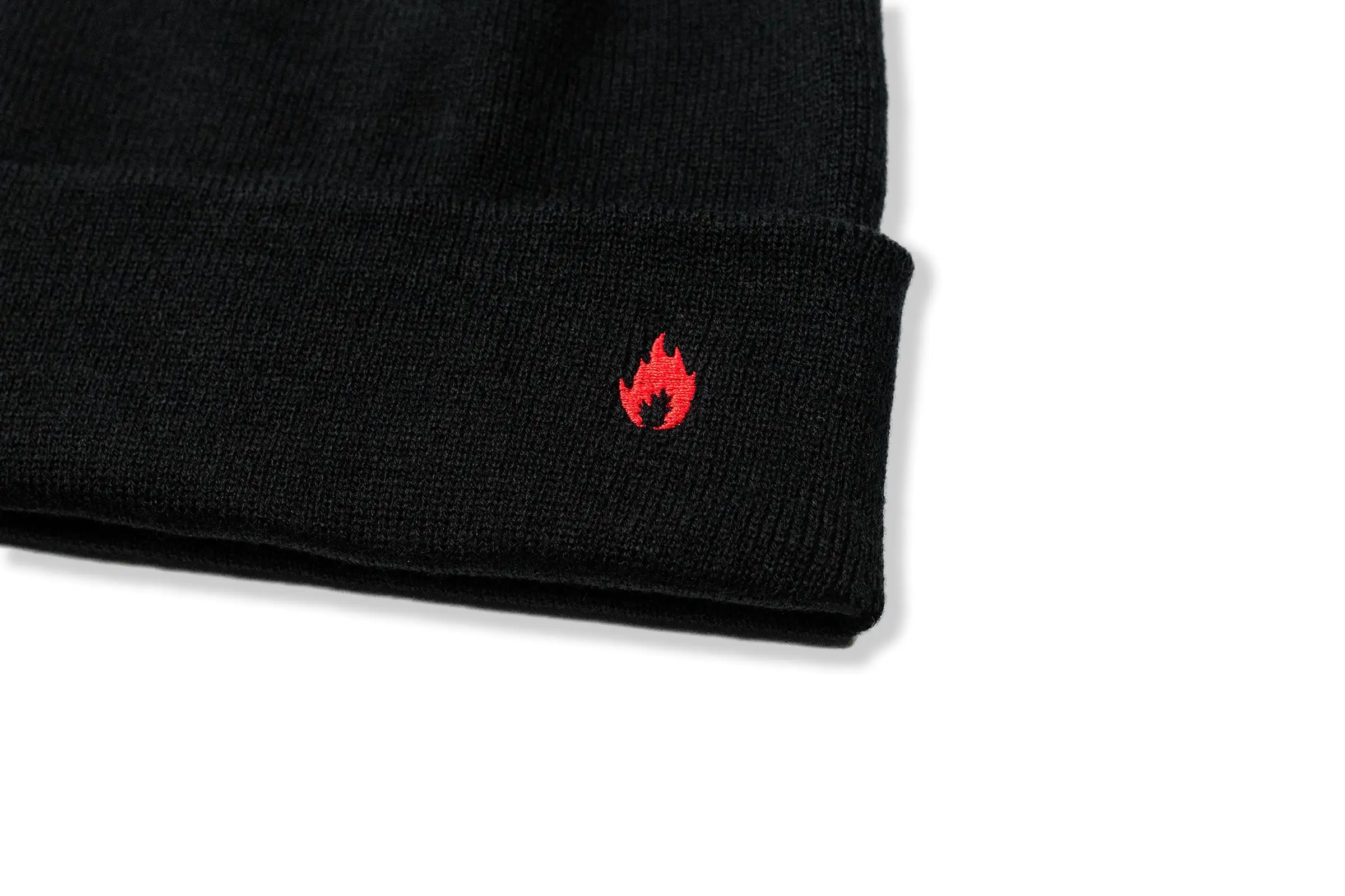 Just in time for those seasonal chills we’ve brought back our beanie hats to round off fits and keep your lugs toasted this Autumn Winter. Constructed from acrylic wool with a subtle HANON Flame embroidered on the cuff. Featuring here in a defining black colourway. Style it with some button badges or even attach a patch, the world’s your oyster!