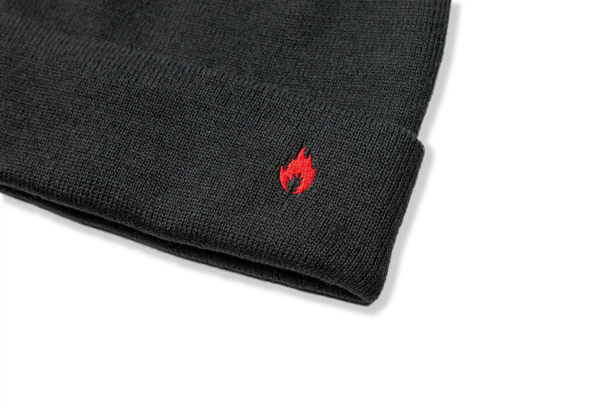 Just in time for those seasonal chills we’ve brought back our beanie hats to round off fits and keep your lugs toasted this Autumn Winter. Constructed from acrylic wool with a subtle HANON Flame embroidered on the cuff. Featuring here in a HANON favourite shade of charcoal. Style it with some button badges or even attach a patch, the world’s your oyster!