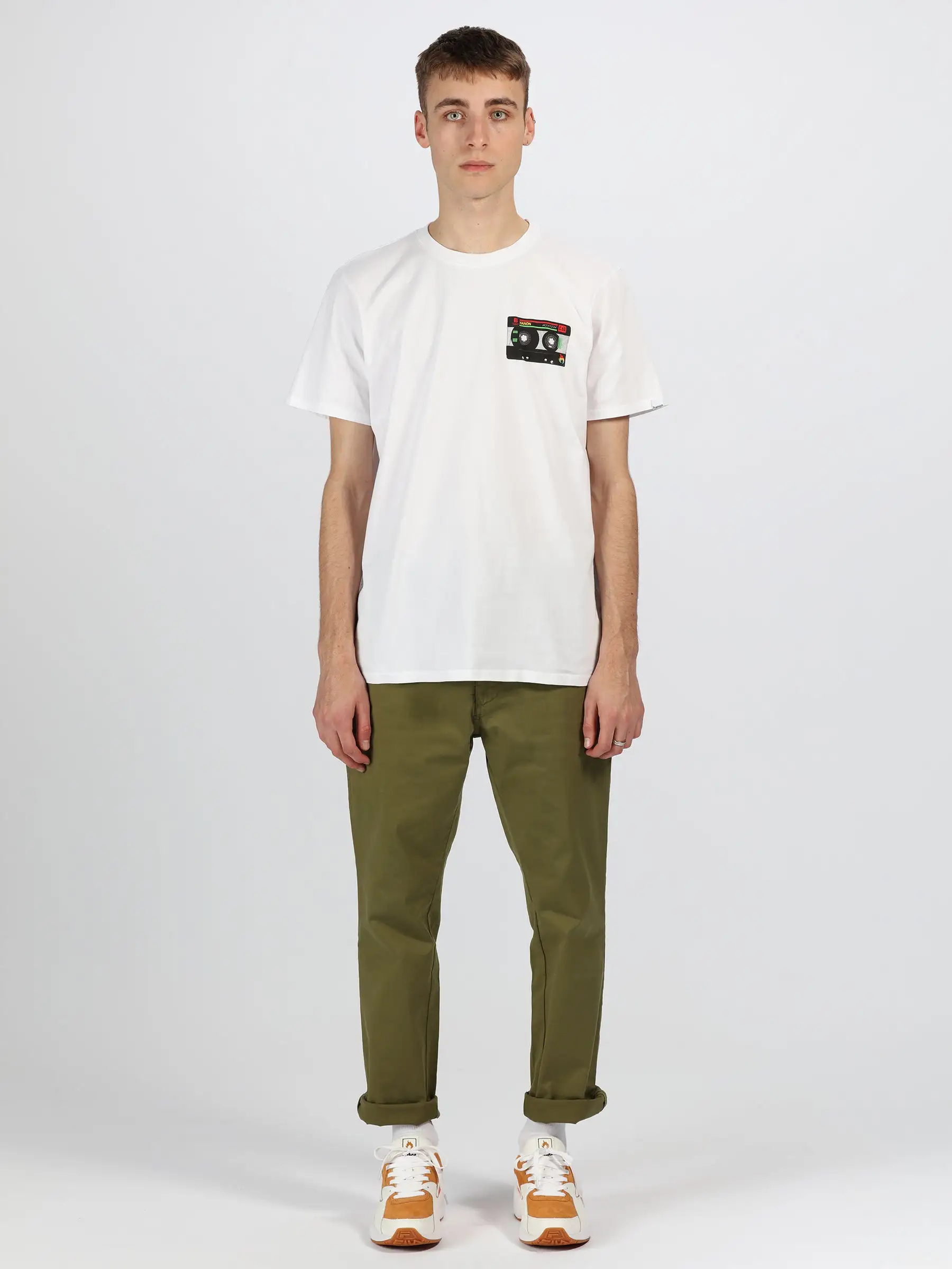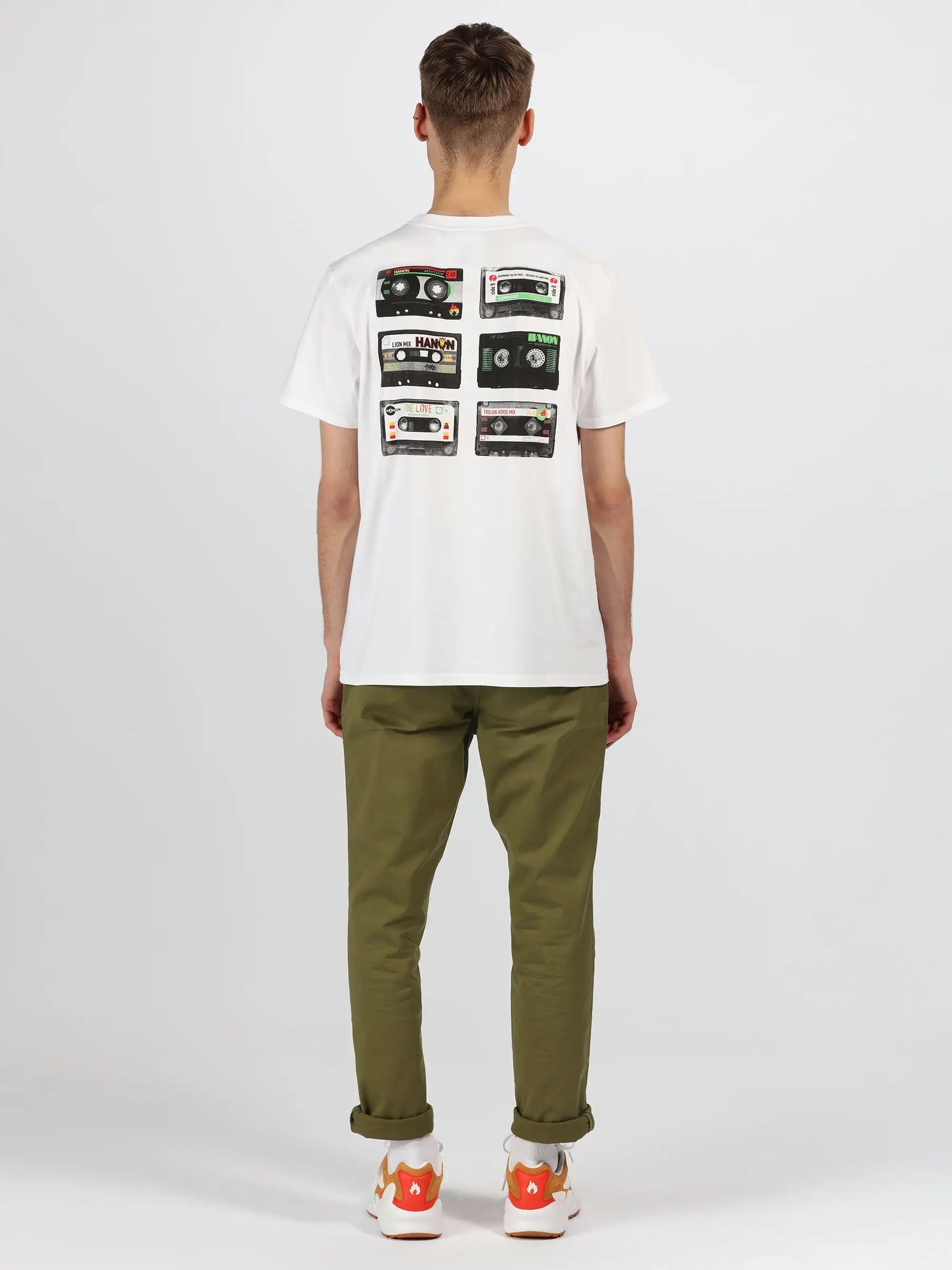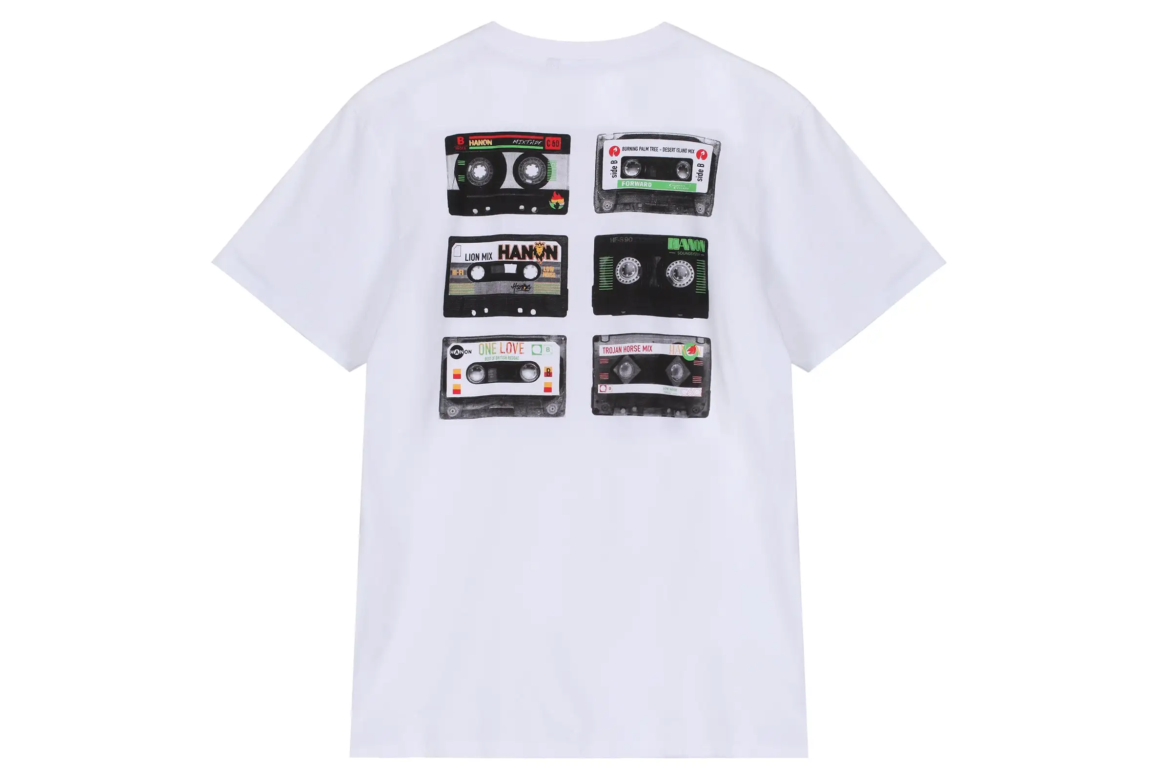 The HANON Mixtape Tee in White is crafted in Portugal using 160gr cotton jersey and features our Mixtape graphic printed small on the chest and large on the back.