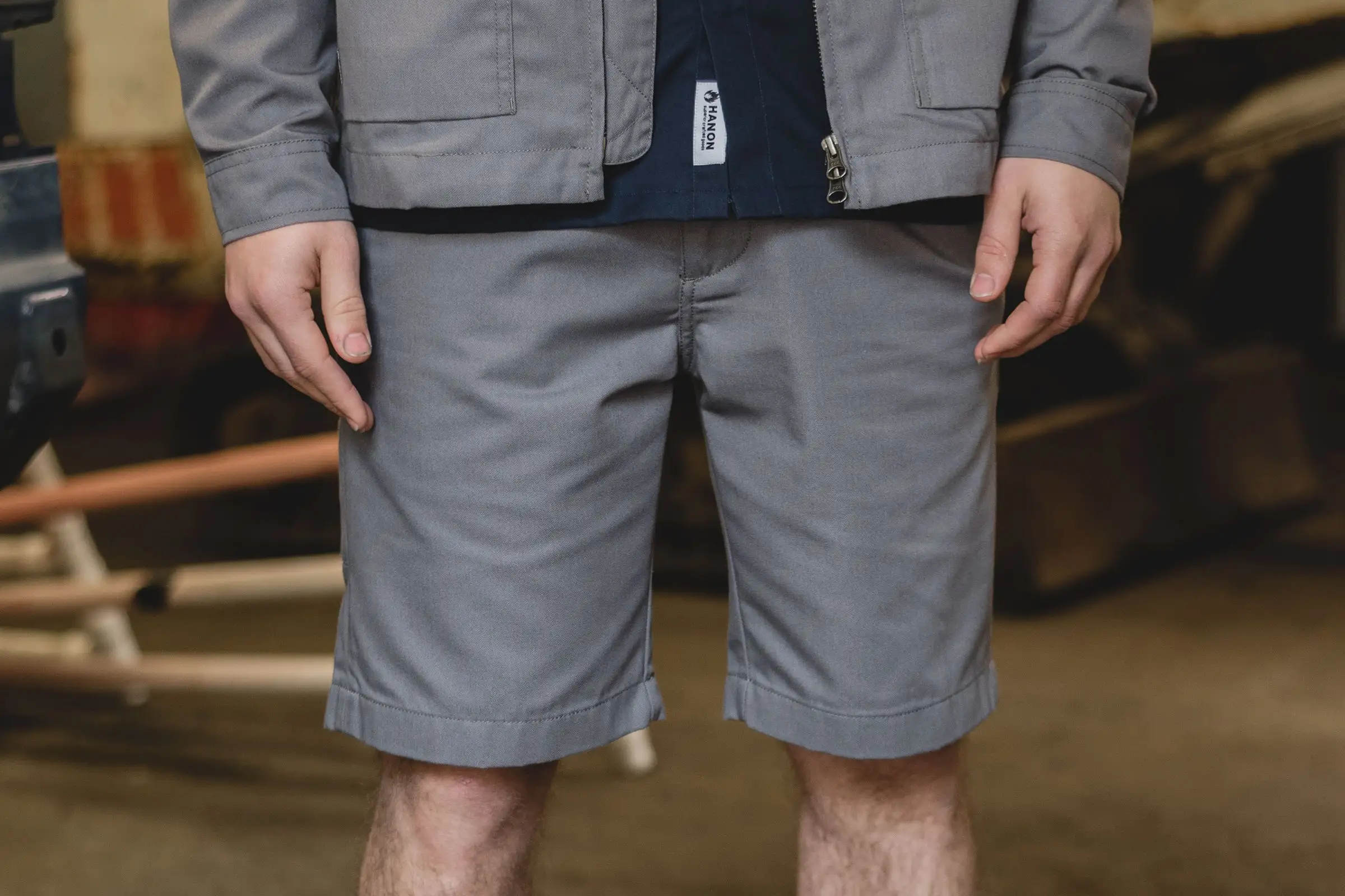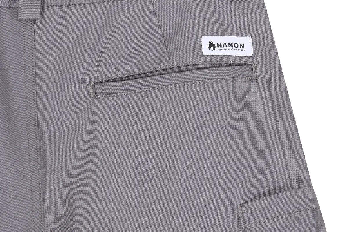 Inspired by classic workwear and arriving in our seasonal colour of Grey, the HANON Worker Short for SS18 has been crafted in Portugal, features five pockets, a zip fly with button closure, and has been finished with a contrasting pinstripe lining.