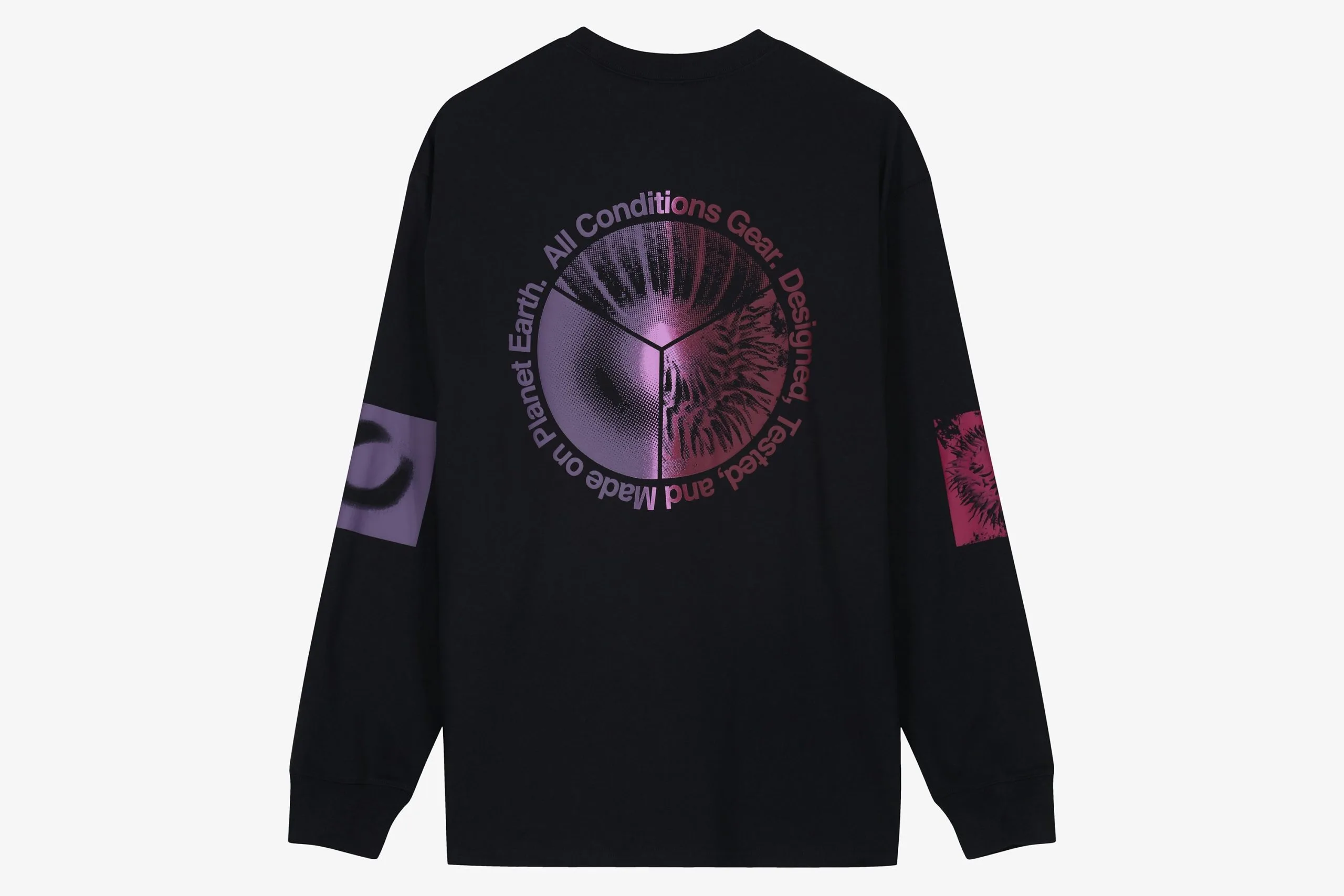 Taking cues from the Oregon coastline, specifically the organisms found within the rock pools, ACG have produced a set of graphics printed using iridescent overlays that shine in a gradient of pinks and purples. The longsleeves provide an option for the transition between winter and the upcoming spring seasons ahead. An ACG logo is printed on the chest for subtle branding.