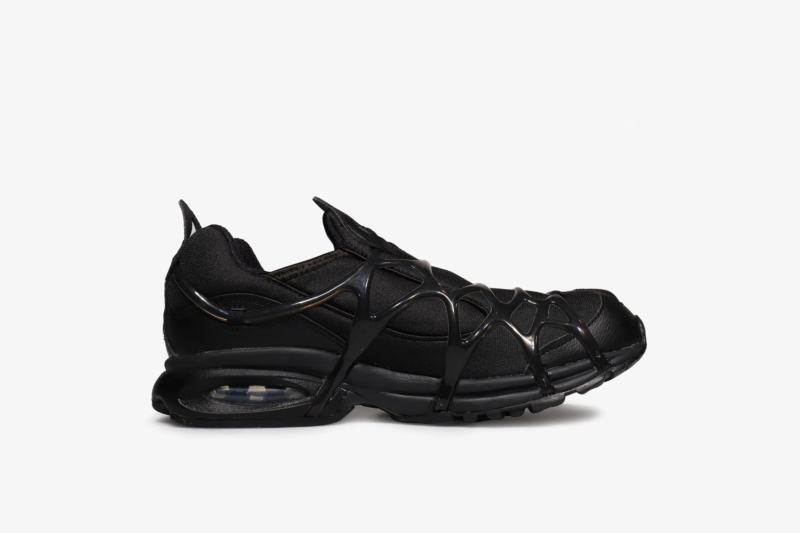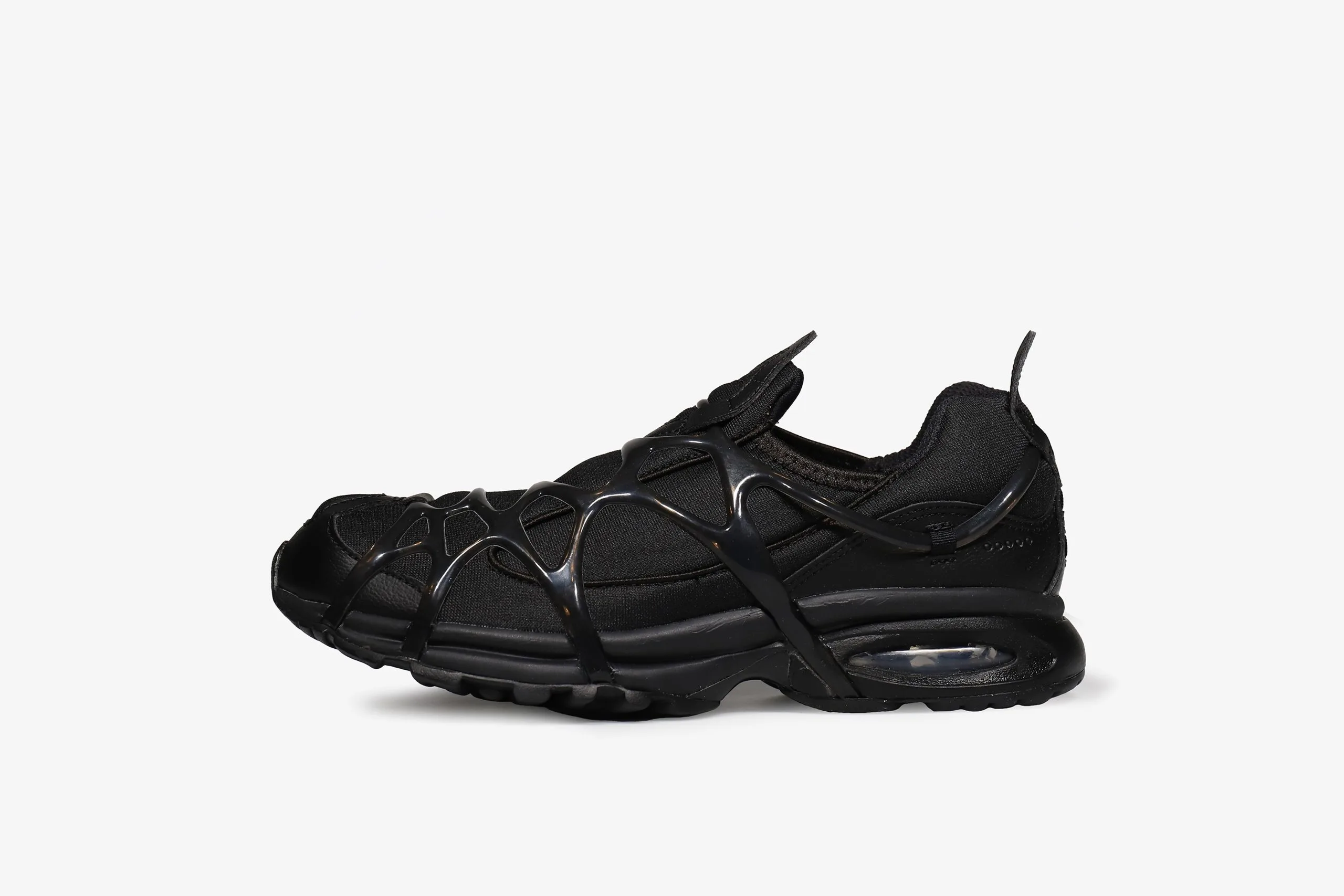 Casual meets technical with the Air Kukini. This pair’s all black stretchy neoprene-like fabric upper goes full stealth mode. Comfort remains key with the webbed support system adding a sporty touch, whilst the visible Air cushioning below supplies unmatched comfort and puts the cherry on the bottom of this boundary-pushing paradox.