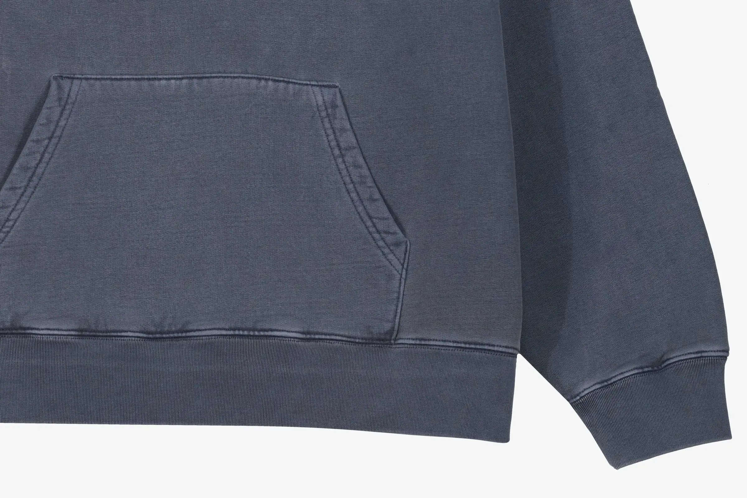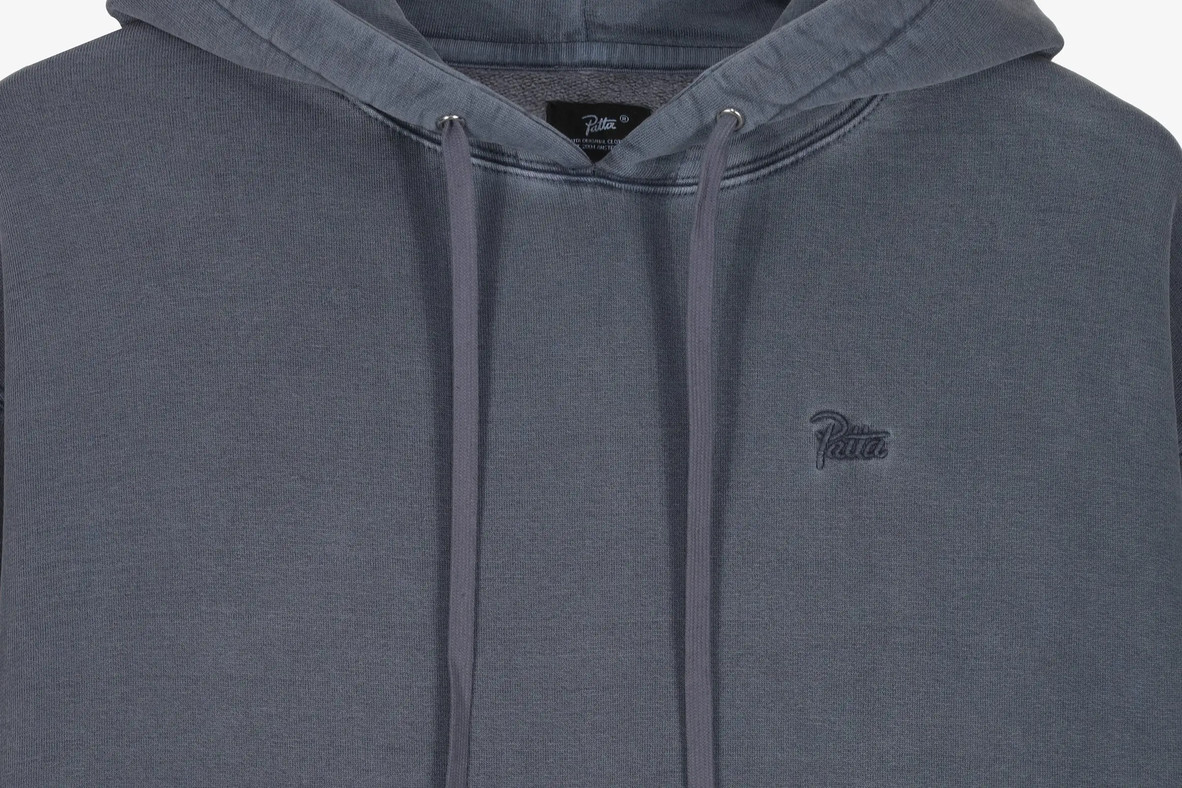 Coming in 410gsm soft brushed cotton, the Patta Basic Washed Boxy Hooded Sweater is pigment garment dyed. The hoodie features a drawstring hood with a kangaroo pouch pocket at the front with ribbed collar and sleeves. Branding is kept simple as always with a script logo embroidery on the left hand side of the chest.